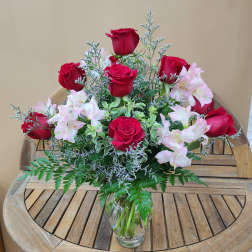 Price: $110.00Red Roses And Pink Peruvian Lilies